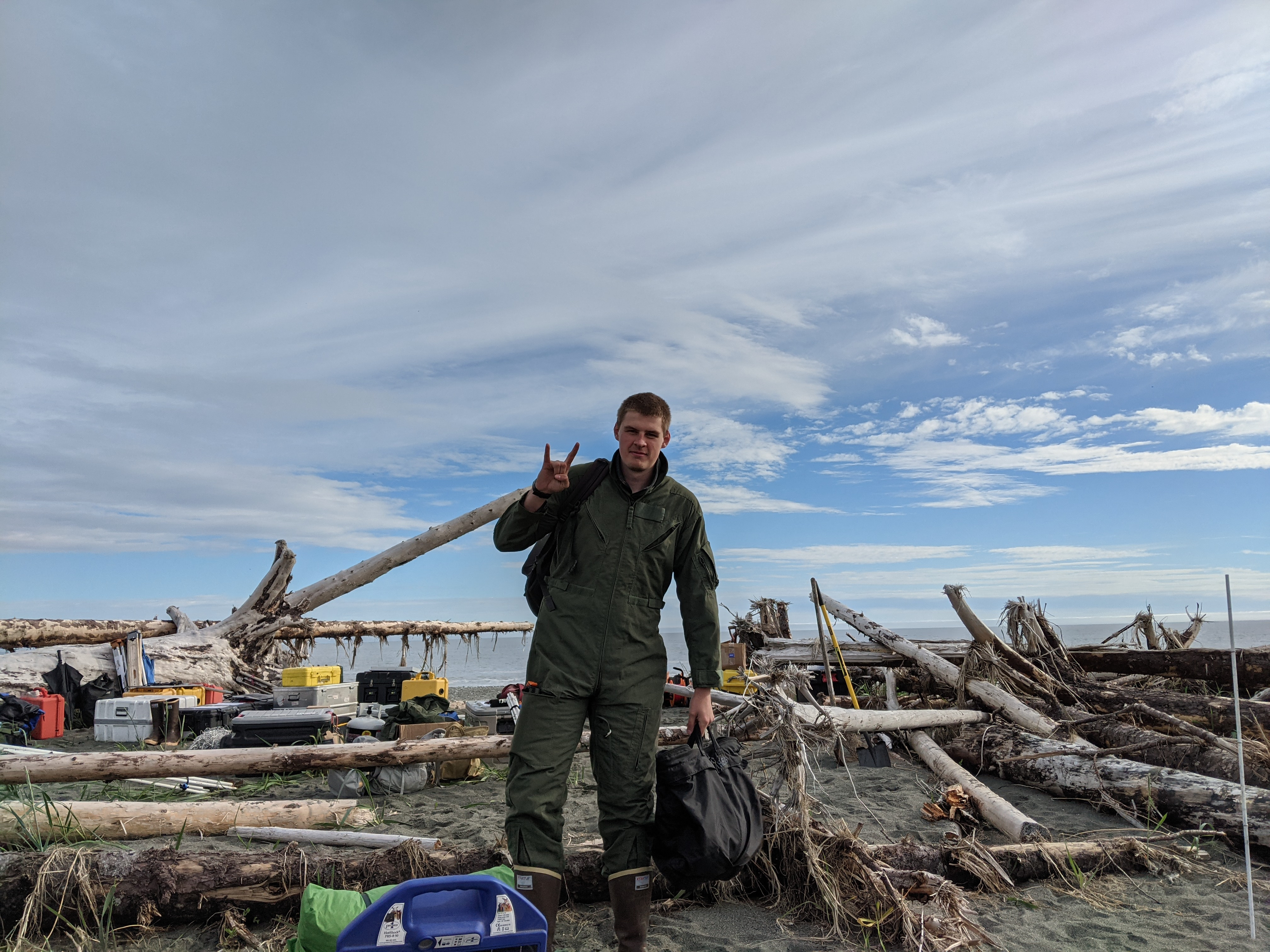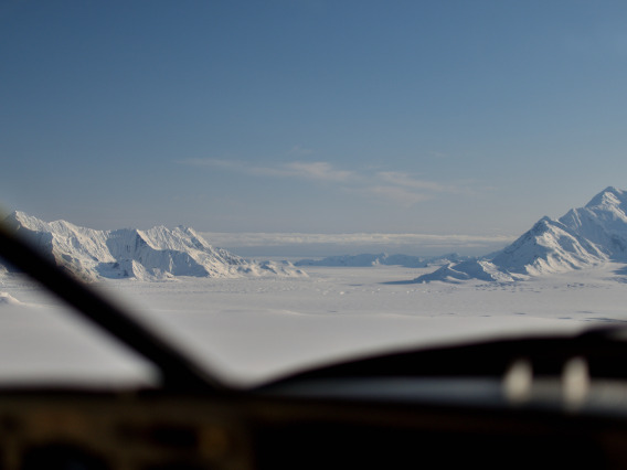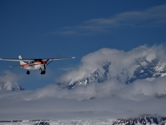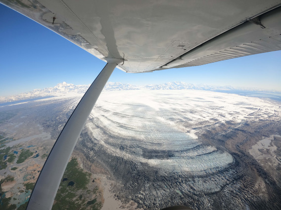 2023: Jack and the pilot in transit to Yakutat for the airborne snow radar component of the field campaign.