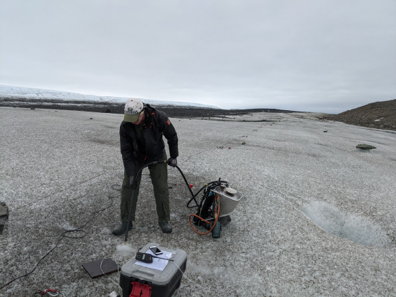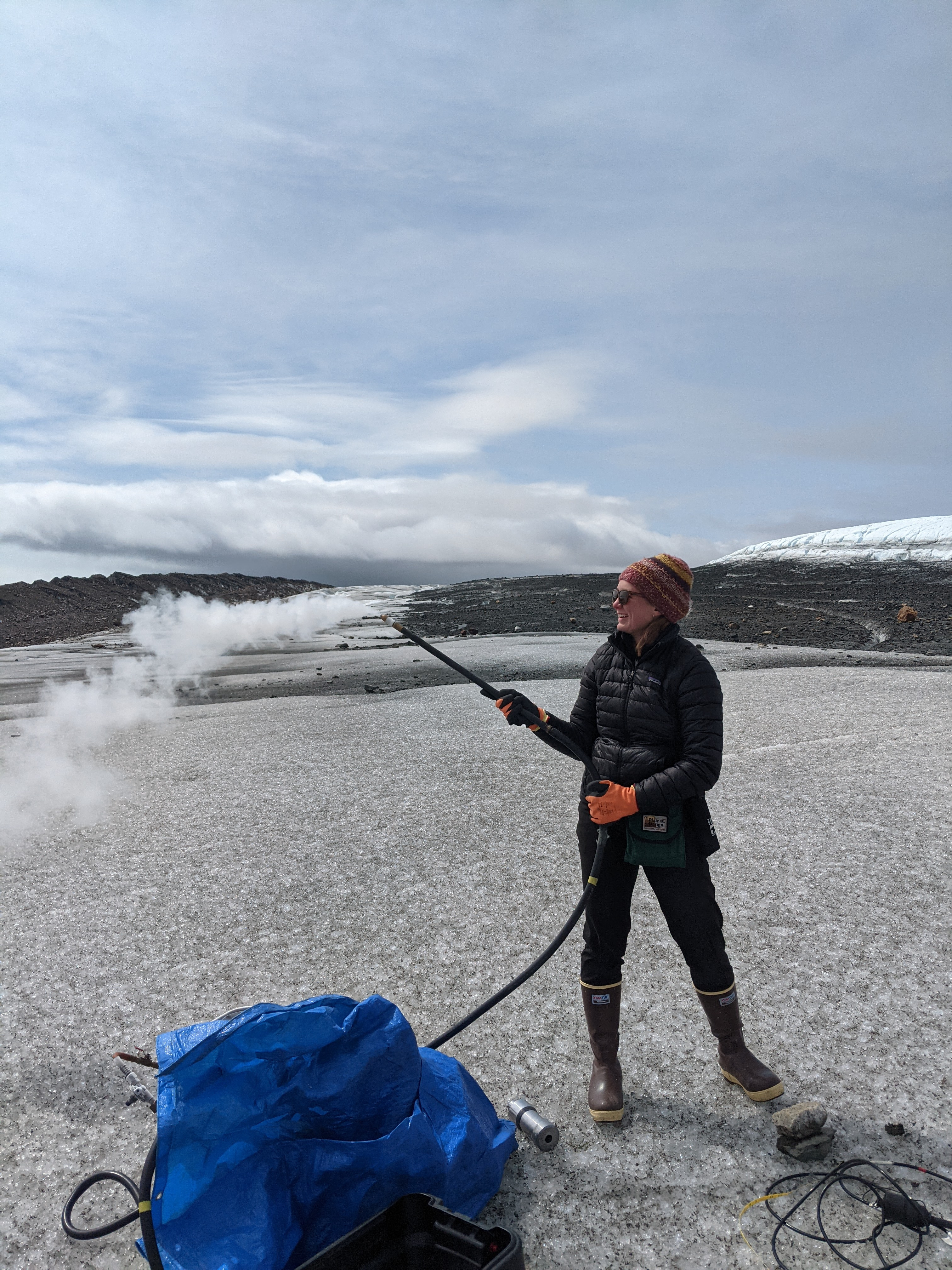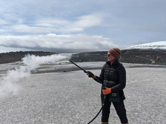 2021: Anna gets ready to fire the Betsy Gun on the glacier
