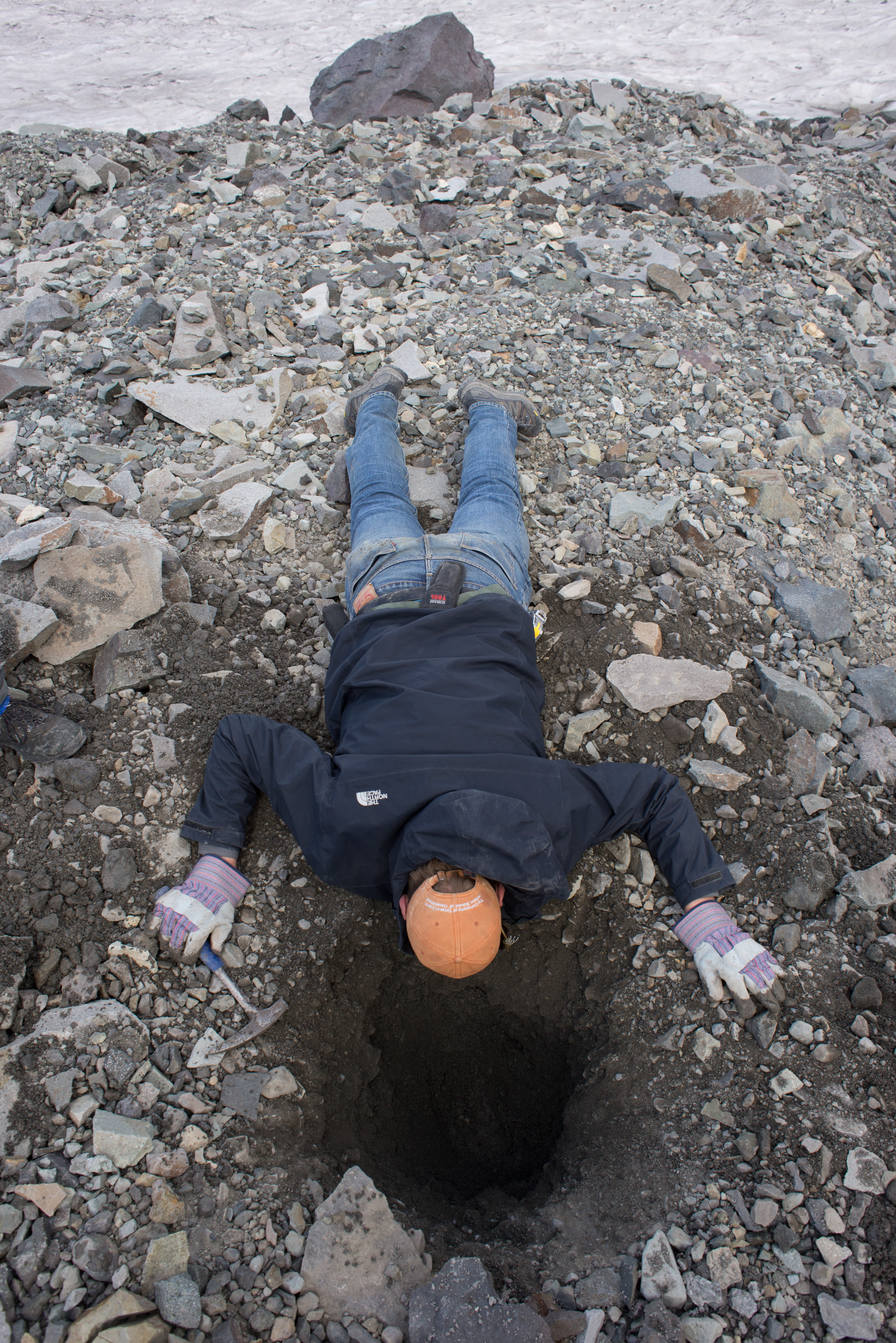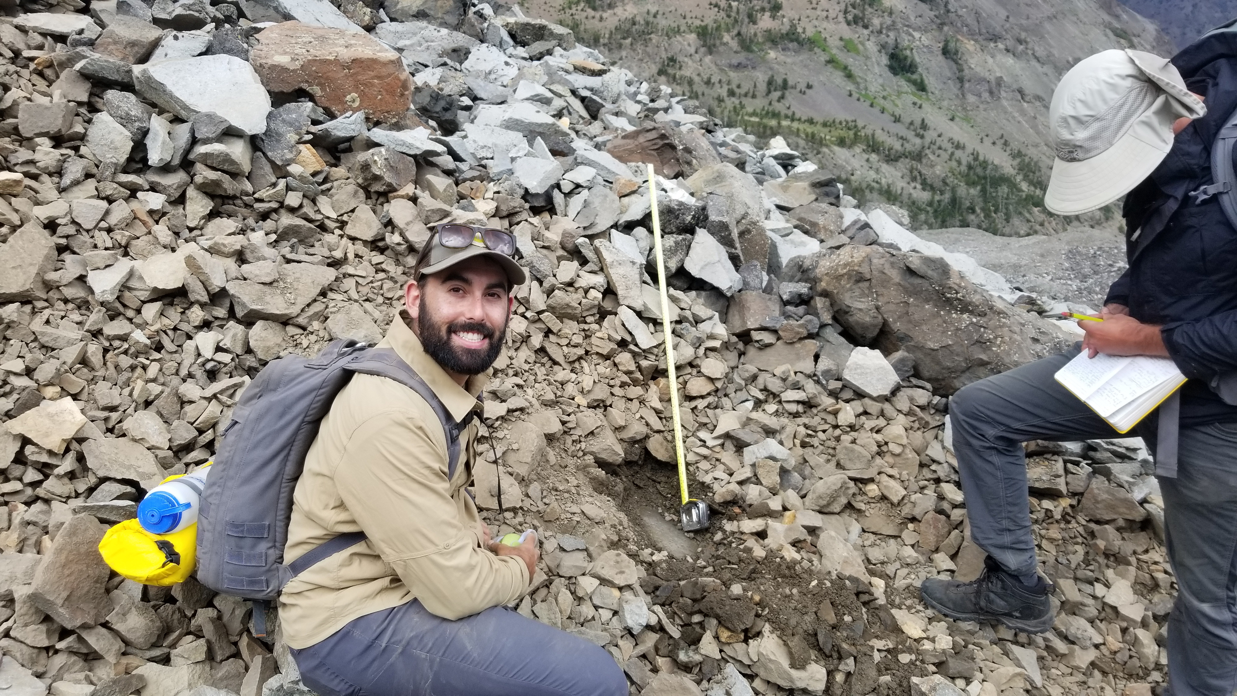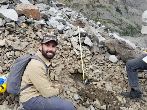 2019: Brandon poses next to an ice exposure on the Galena Creek Rock Glacier.