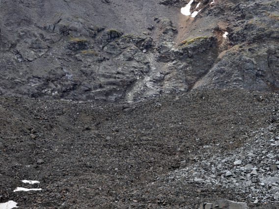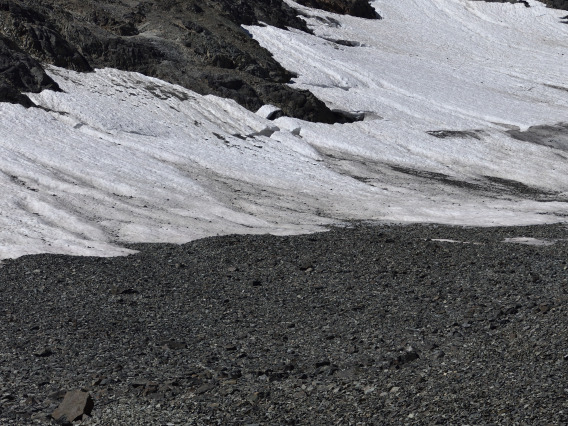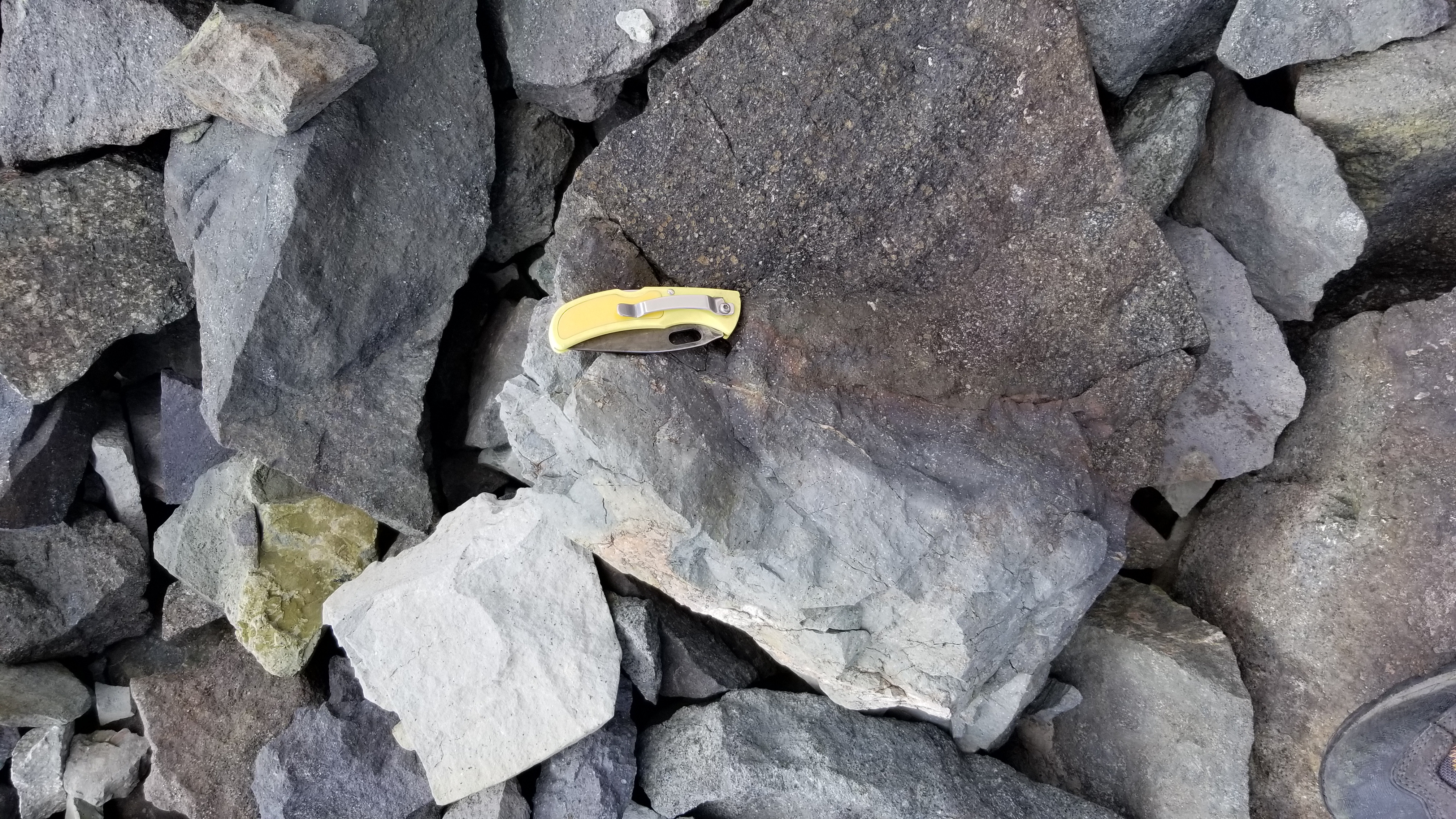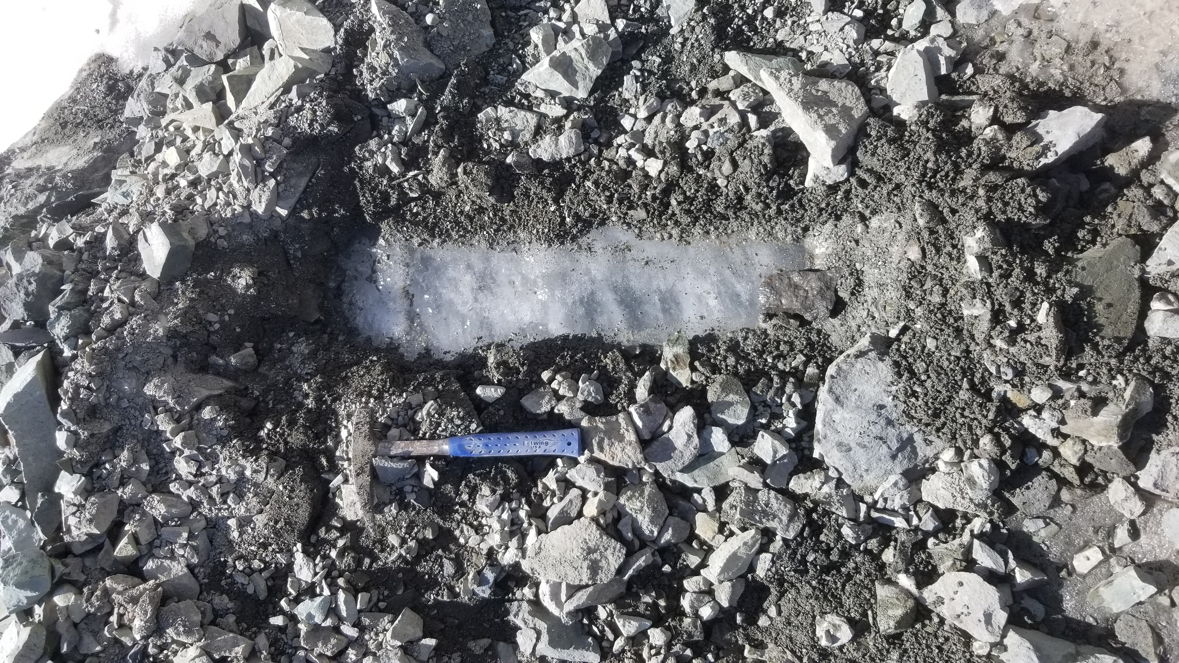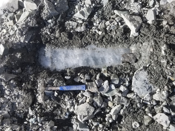 2019: A chilled margin in a piece of debris on the Sulphur Creek Rock Glacier.