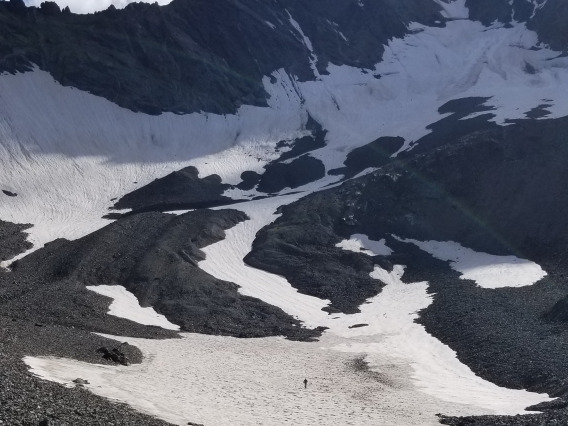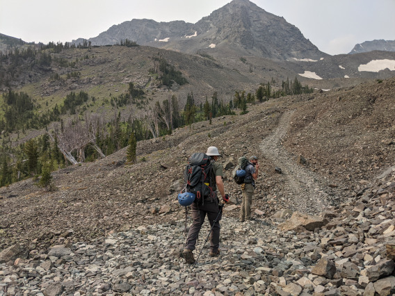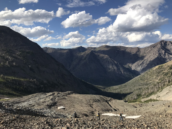 2019: Descending Galena Creek gives a perspective of the present state of the rock glacier in the context of the U-shaped valley carved during glaciation in Wyoming's Absaroka Mountains.