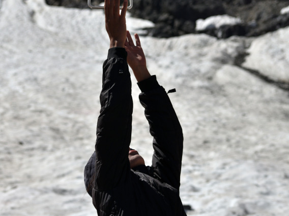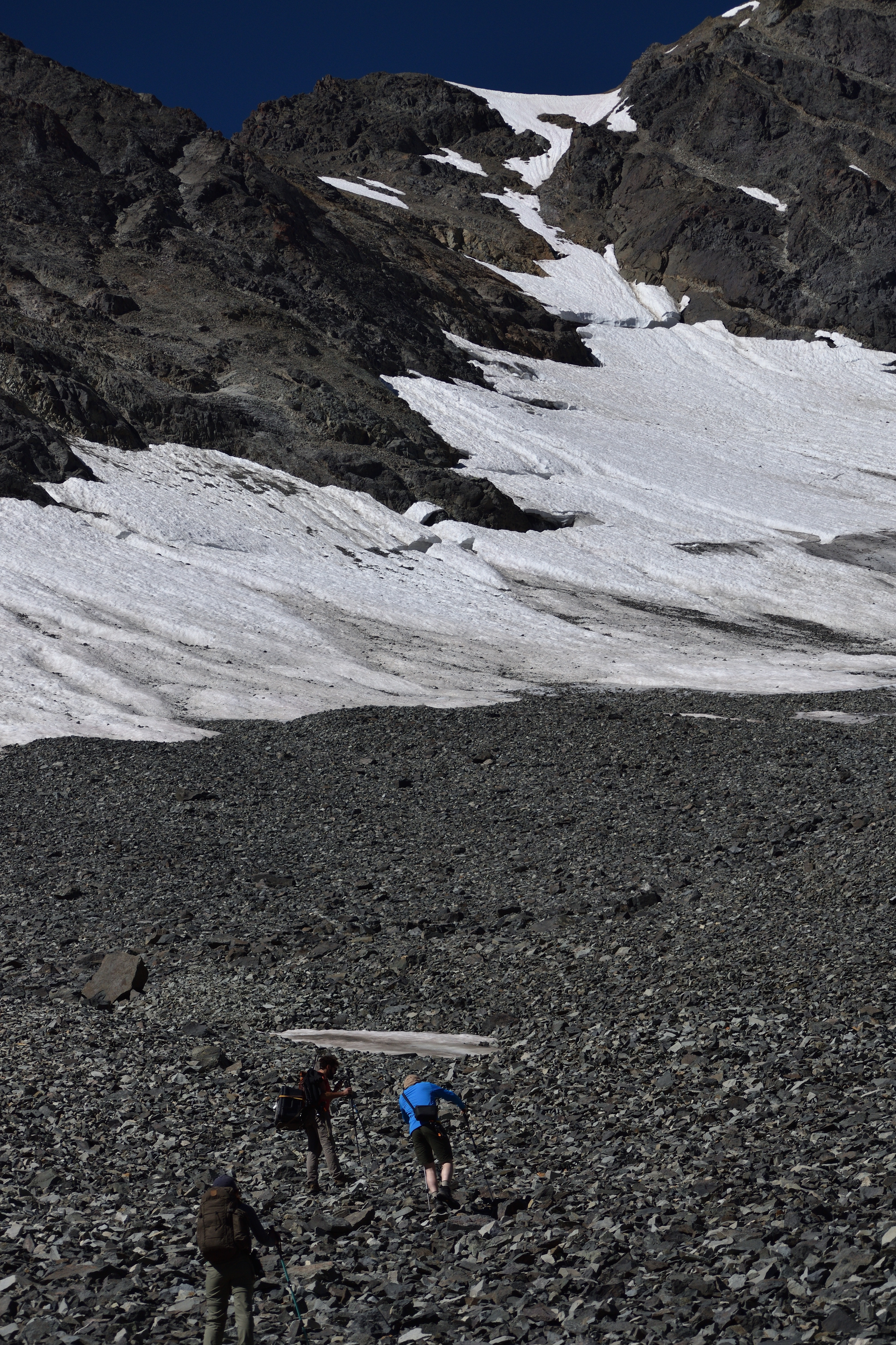 2020: Tyler and Stefano begin the long ascent up the Sulphur Creek Rock Glacier