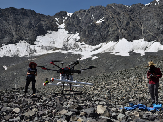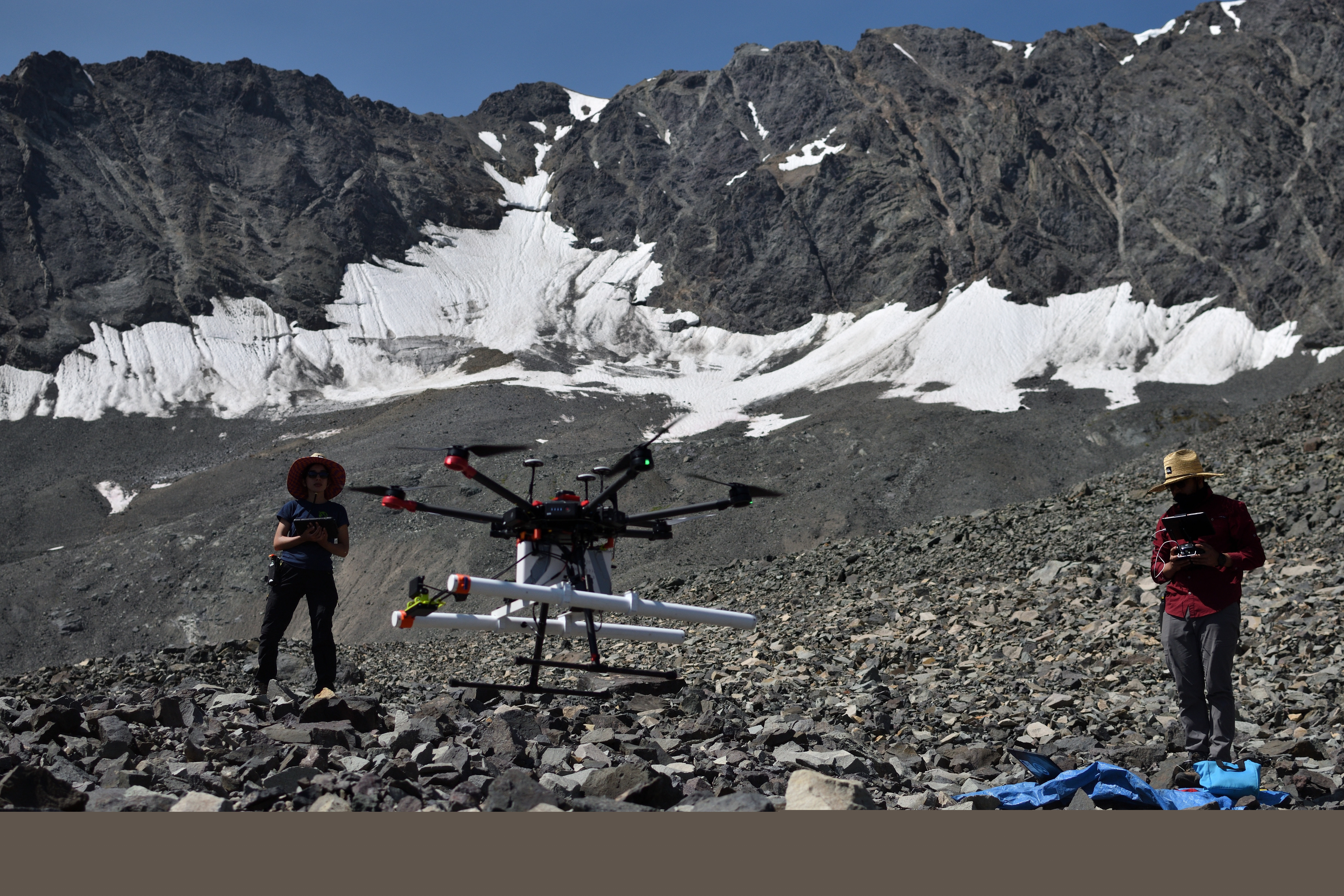 2023: Roberto and Rocío launching the GPR drone for data collection on Sulphur Creek.