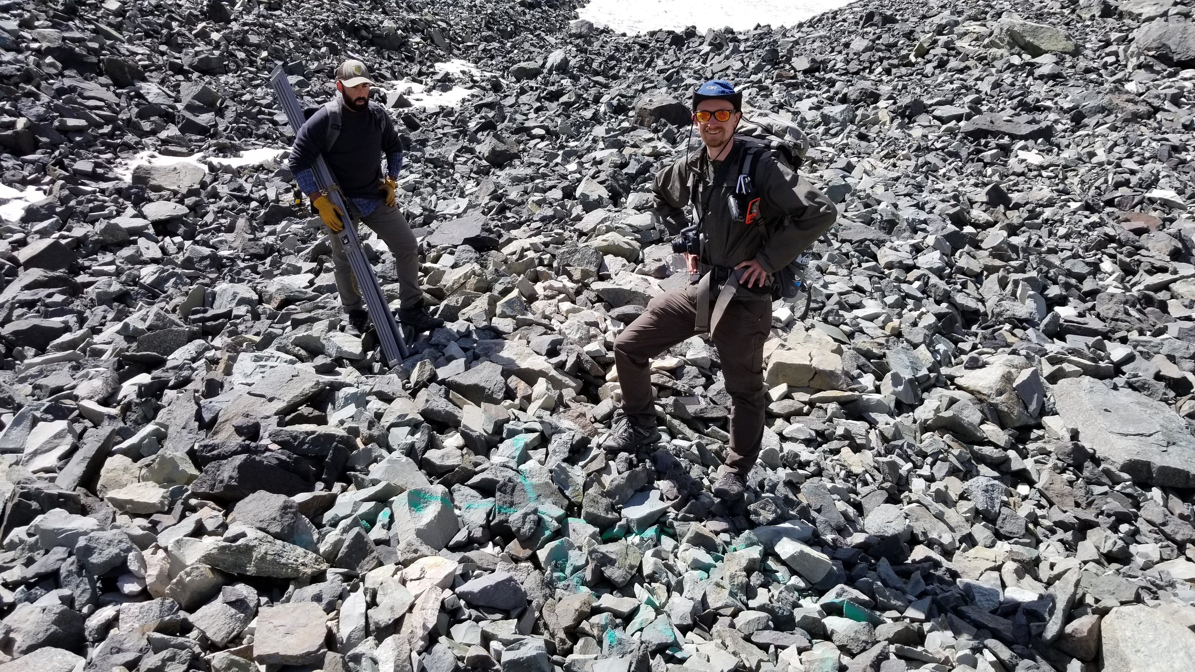 2019: Eric and Brandon pause to a regain composure after a hard climb up the Sulphur Creek Rock Glacier