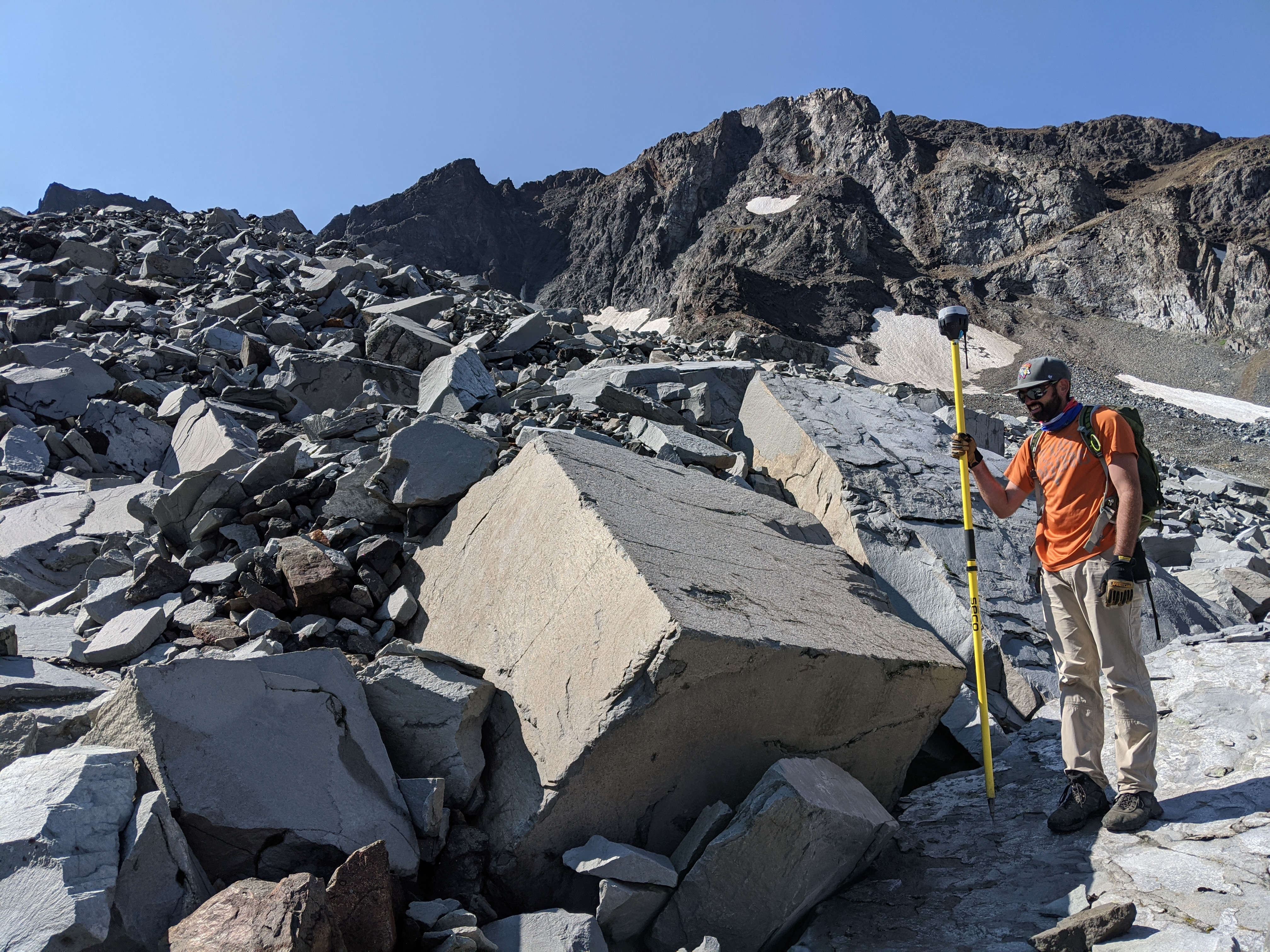 2020: Tyler holding GPS rover while surveying ground control points on Galena Creek Rock Glacier